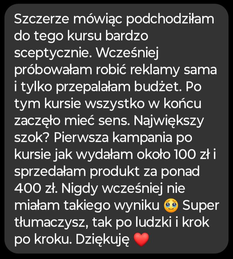Łączę dane, analitykę i psychologię decyzji zakupowych, dzięki czemu reklamy przestają być kosztem, a stają się przewidywalnym mechanizmem generowania klientów.